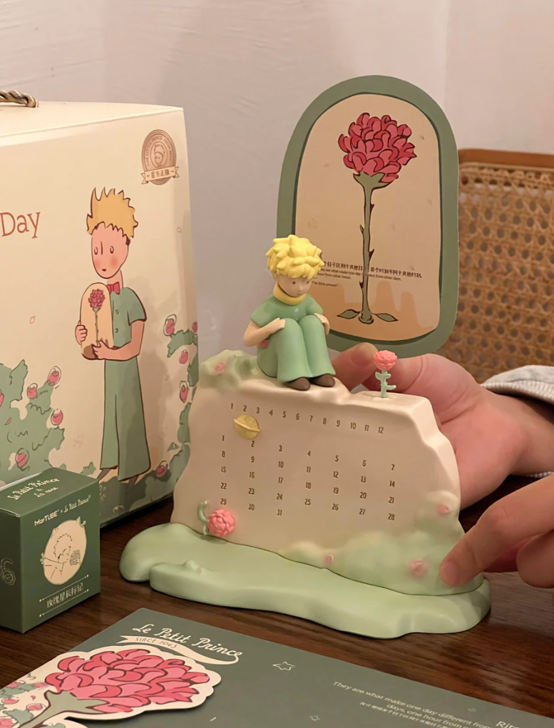 Bring the gentle world of Le Petit Prince to your desk with this beautifully crafted resin calendar set. The figure of the Little Prince sits thoughtfully beside his beloved rose, capturing the essence of simplicity and wonder. The rotating month and date panels make it an elegant, reusable piece you can enjoy year after year. Whether you’re journaling, planning, or simply adding a storybook touch to your décor, this piece is a delightful blend of stationery and art.