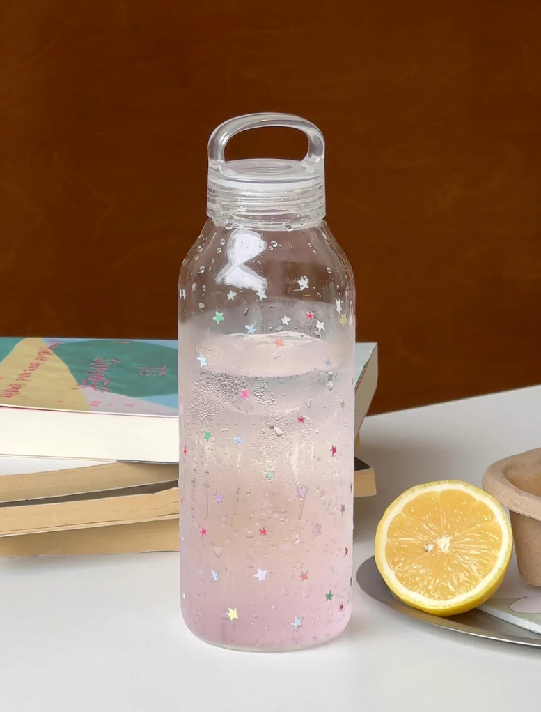 This star glass tumbler adds a subtle sparkle to your daily routine. Designed with a smooth frosted finish and a sturdy handle cap, it’s easy to carry and comfortable to hold. The star accents bring a touch of personality without feeling too loud, making it ideal for workspaces, gym bags, or casual outings. Durable, reusable, and effortlessly cute; it’s your go-to bottle for everyday hydration.
